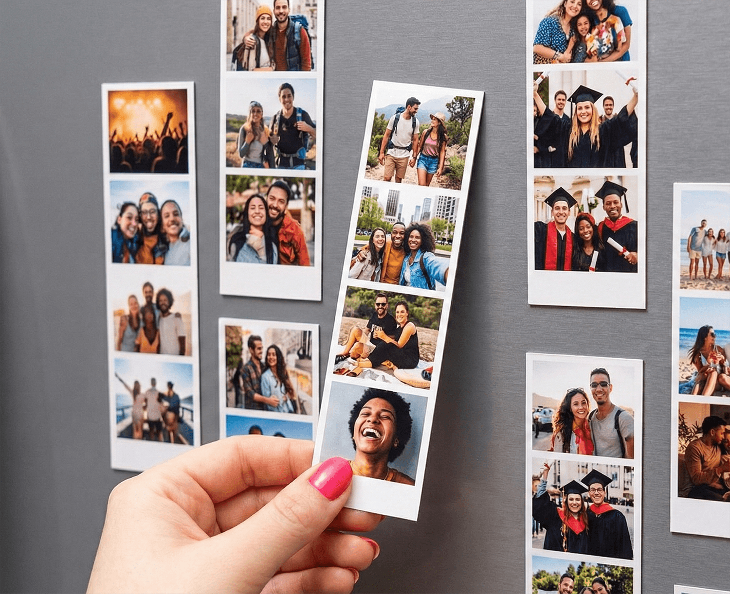 Nostaljik fotoğraf kulübesi (photobooth) estetiğini yaşam alanlarınıza taşımanın en eğlenceli ve kalıcı yoluyla tanışın. 4×16 cm ölçülerindeki 6 adet şerit magnet setimiz, en sevdiğiniz kareleri bir film şeridi gibi art arda sıralayarak kendi hikayenizi oluşturmanıza olanak tanır. Aile tatilleriniz, arkadaşlarınızla geçirdiğiniz eğlenceli anlar veya bebeğinizin büyüme serüveni; bu özel tasarım sayesinde buzdolabınızda, kombinize, ofisinizdeki metal panolara veya herhangi bir manyetik yüzeye estetik bir dokunuş katar. Sevdiklerinize hediye etmek için de kusursuz ve oldukça yaratıcı bir alternatiftir.