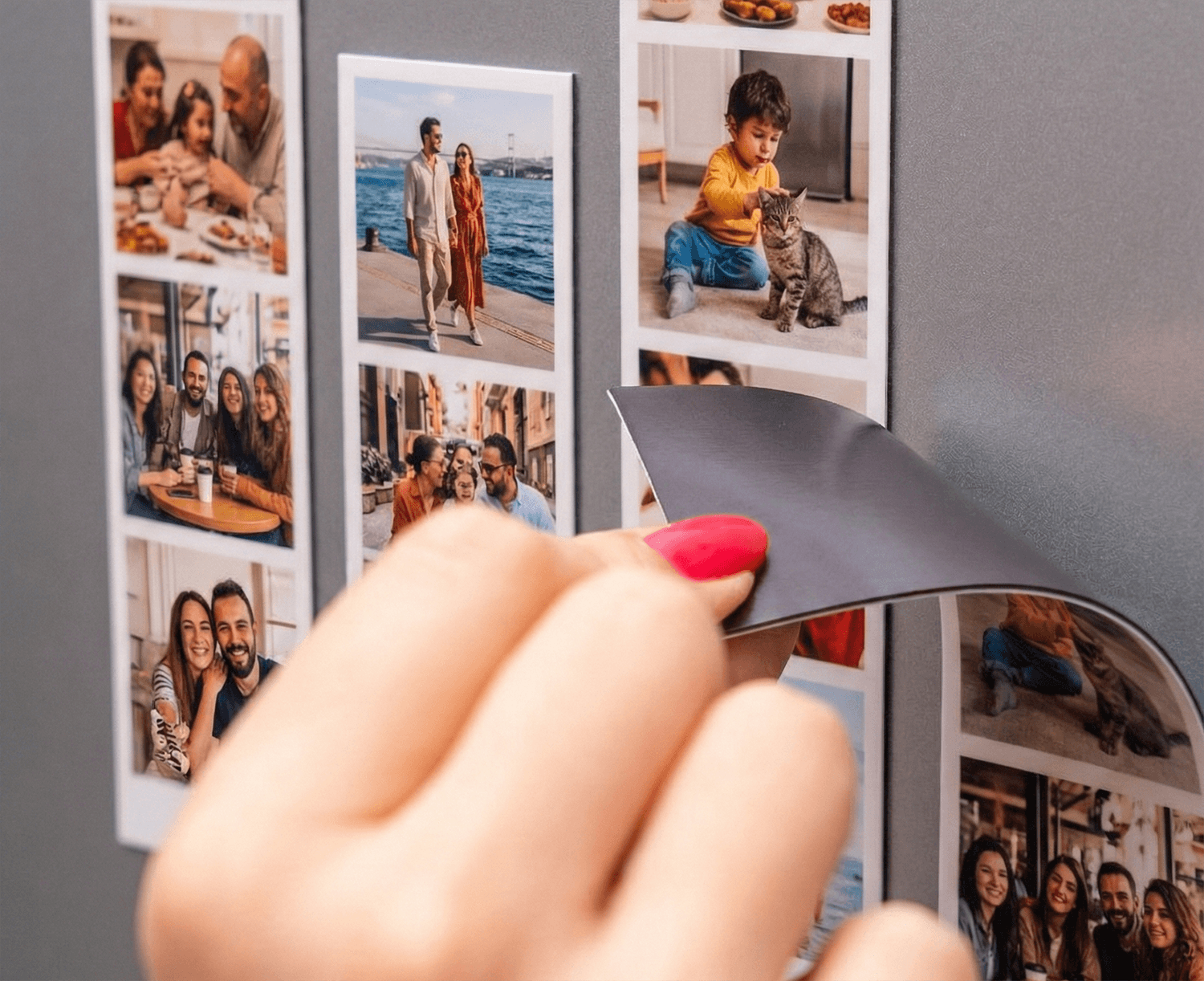 Fotoğraflarımı şerit magnete yüklerken nelere dikkat etmeliyim? Şerit magnet formatı gereği, yan yana/alt alta dizilen küçük karelerden oluşur. Yükleyeceğiniz fotoğrafların kare (1:1) veya yatay/dikey oranlarına göre sistemimiz otomatik hizalama yapacaktır. En iyi sonuç için aşırı karanlık olmayan ve yüzlerin/detayların çok uzakta kalmadığı yakın plan çekimleri tercih etmenizi öneririz.